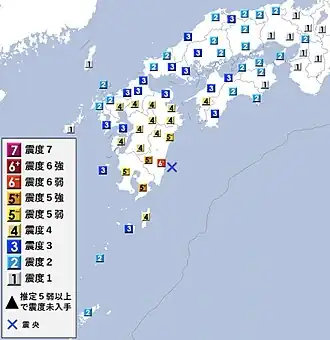 ![]() Map of JMA seismic intensities | |