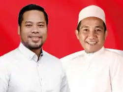 Incumbent vice regent Denny Karter Febrianto, initially chairman of North Lombok's Gerindra branch, initially received his party's support to run as regent.[10] However, by August, the party's central leadership opted to back the Najmul-Syamsuri ticket. As Febrianto refused to cancel his bid, he was fired from his chairmanship of the party, although he remained a party member.[11] He instead ran with the backing of the PDI-P, PKS, and Nasdem, with Zaki Abdillah as his running mate.[12]