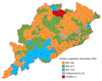 ![]() Structure of the Odisha Legislative Assembly after the election | |||||||||||||||||||||||||||||||||||||||||||||||||