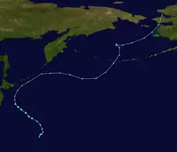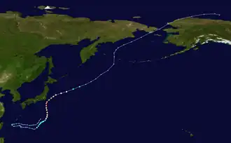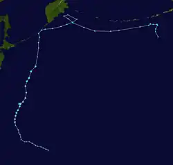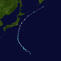 While Yagi was still on its way to making landfall in the Philippines, JTWC announced another formation of a tropical disturbance in the open Pacific Ocean on September 2. JMA also started issuing advisories, and it was recognized as a tropical depression in the same location. Two days later, as JTWC also upgraded it into a tropical depression, it received its designation, 13W. The day after, JMA reported that 13W developed into a tropical storm, giving it the name Leepi as the twelfth named storm of this season. Leepi then accelerated northeastwards before it became an extratropical cyclone on September 6.