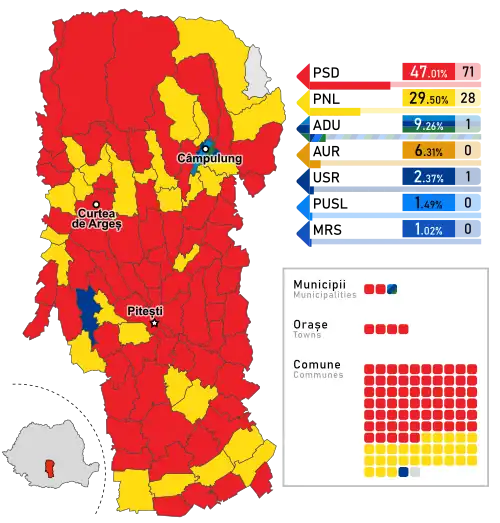 - ^ Argeș: USR-3, PMP-1, FD-1