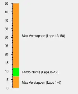 At the starting grid, Norris appeared to jump the start but the stewards did not issue any penalty as the FIA's standardised grid box transponder did not detect an infringement. The sporting regulations require these transponders to detect an infringement for a penalty to be issued.[15] There were two retirements. Before the race, on the formation lap, Pierre Gasly reported gearbox issues which forced him to retire before the start of the race. Lance Stroll retired on lap 7 due to a crash at Turn 23 which brought out a safety car.[16] Kevin Magnussen of Haas accumulated 20 seconds worth of penalties. One of these was a 10-second penalty for a collision with Alexander Albon, and the other 10-second penalty was for overtaking Yuki Tsunoda off-track. Knowing that he was unlikely to finish in the points, the team ordered him to focus on defense during the wide parts of the circuit, and drive as slowly as possible in the narrow parts of the circuit while overtaking is most difficult. With Magnussen backing up the drivers behind, teammate Nico Hülkenberg successfully finished tenth and earned his and Haas's first point of the season.[17]