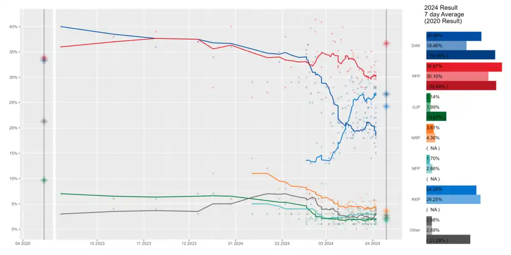 - ^ "PPP leader expresses disappointment after exit polls predict a landslide victory for opposition". Yonhap News Agency. 10 April 2024. Archived from the original on 10 April 2024. Retrieved 10 April 2024.