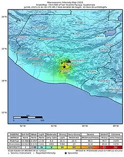 - ^ "Más de 30 viviendas dañadas por sismos en San Vicente Pacaya" (in Spanish). ChapinTV. 10 July 2025. Retrieved 11 July 2025.