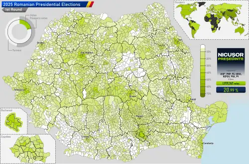 - ^ "Rezultate alegeri prezidențiale 2025". Autoritatea Electorală Permanentă (in Romanian). Retrieved 9 June 2025.