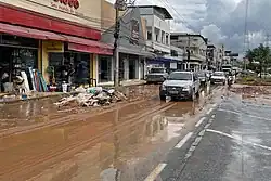 The Unidade de Pronto Atendimento (UPA) in the Canaã neighborhood of Ipatinga was flooded, leading to its closure and the transfer of patients to other health facilities within the municipality and neighboring cities.[22] The commercial sector was also affected, with reports of shopkeepers losing everything.[28] Avenida José Selim de Sales, a major commercial artery, was heavily impacted by the floods. Even after the waters receded, mud remained on homes, businesses, streets, and avenues.[29]