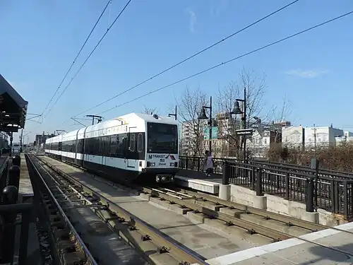 22nd Street station is a station on the Hudson–Bergen Light Rail (HBLR) in Bayonne, Hudson County, New Jersey. Located between East 22nd and East 21st Streets in Bayonne, the station is the second of four stops in the city. The station contains two tracks with a set of two side platforms, an outlier from the other stations of Bayonne, which all contain island platforms. 22nd Street serves two different services, the local line between 8th Street in Bayonne and Hoboken Terminal. It also serves the Bayonne Flyer, an express between the four Bayonne stops and Hoboken. The station is handicap accessible with elevators and platform levels that meet the Americans with Disabilities Act of 1990 standards. 22nd Street opened on November 15, 2003 as an extension from 34th Street, serving as the terminal until 8th Street opened on January 31, 2011.[2][3]