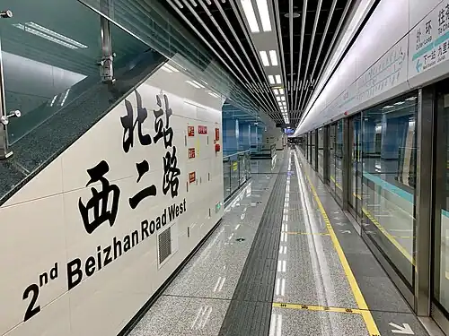 2nd Beizhan West Road station (Chinese: 北站西二路站; pinyin: Běizhànxī'èr Lù zhàn), formerly known as 2nd Beizhan Road West station, is a transfer station on Line 5 and Line 7 of the Chengdu Metro in China. It was opened on 6 December 2017.[1][2]