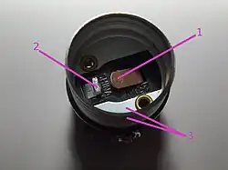A 3-way socket has three electrical contacts. In addition to the two contacts of the standard socket, a third contact is added. This contact is positioned off-center in the bottom of the socket (contact two in photo). This extra contact matches a ring-shaped contact on the bottom of a 3-way bulb, which creates the connection for the second filament inside the bulb. A problem of these devices is that the ring contact of the socket (contact two in photo) digs into the lead seal on the lamp bulb's contact ring and this connection tends to fail early (sometimes in months), leading to intermittent flashes, popping noises, and loss of power to the low wattage filament as the lead seal on the bulb's ring alternately melts and solidifies.