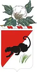 - Symbolism: Scarlet and white (silver) represent the Cavalry branch. The panther embodies the qualities emphasized by the motto, "Swift and Unseen." Black denotes strength and solidarity. The paws and claws terminating the motto scroll symbolize tenacity and a readiness to fight. The green of the scroll and shrub on the shield signify growth and the land which is a traditional cavalry environment. Scarlet also denotes courage and sacrifice.