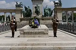Public duties by the regiment are also provided by a four-man team at the Tomb of the Unknown Soldier at the Millennium Monument on Hősök tere (Heroes Square) with the tradition beginning in the communist era during the HPA's 7015th Ceremonial Regiment tenure as chief ceremonial unit. This usually happened between 15 March and 23 October (both dates are Hungary's National Day), during which it stood permanent guard on the square.