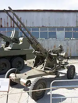 The 3 cm MK 303 Flak and twin-mounted 3 cm MK 303 Flakzwilling (M44) were experimental 30 mm anti-aircraft guns developed in Nazi Germany. They fired the powerful 30x210mm round and only 222 were produced.[1] The gun was to be installed on Type XXI submarines as AA defense[3] and its use as AA defense replacing 2 cm Flak and 3.7 cm Flak weapons was also considered. The use of 3 cm M.K. 303 Flakzwilling on Flakpanzer IV "Kugelblitz" was considered, but rejected. The development began in late 1941[1] and production started in late 1944.