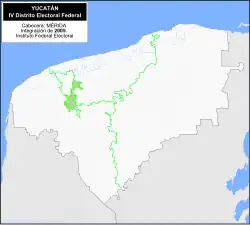 - Between 1996 and 2022, Yucatán had five federal electoral districts. Under the 2017 scheme, the 4th district's head town was at Mérida and it covered 230 precincts in the north of the municipality.[12][11]