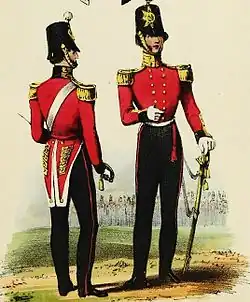 The regiment moved to Gibraltar in April 1834 and to Malta in July 1836.[10] It returned to the West Indies in January 1838 and took up residence in Barbados[10] before moving on to Montreal in Canada in June 1841[11] and embarking for home in May 1843.[12] It departed for India in 1849 and helped to suppress the Indian Rebellion in 1857.[3] The regiment moved to New Zealand in 1861 for service in the New Zealand Wars and took part in a skirmish at Rangiaohia in February 1864 during the Invasion of the Waikato.[3] It returned to England in 1866 and then moved to Afghanistan in 1878 for service in the Second Anglo-Afghan War; it fought in Afghanistan with the Kandahar column.[3]