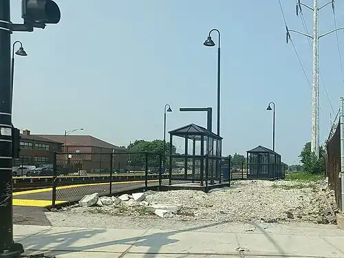 95th Street–Longwood Manor station is a commuter railroad station on Metra's Rock Island District line in the Longwood Manor neighborhood of the Washington Heights section of Chicago, Illinois, at 9501 South Vincennes Avenue at the corner of 95th Street (US 12-20). It is 10.9 miles (17.5 km) from LaSalle Street Station, the northern terminus of the line.[2] In Metra's zone-based fare system, Longwood is in zone 2. As of 2018, 95th Street–Longwood is the 204th busiest of Metra's 236 non-downtown stations, with an average of 64 weekday boardings.[1]