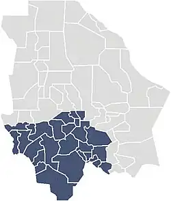 Under the 2005 districting scheme, the district covered the state's southern municipalities of Balleza, Batopilas, Bocoyna, Carichi, Chínipas, Cusihuiriachi, Dr. Belisario Domínguez, Guachochi, Gran Morelos, Guadalupe y Calvo, Guazapares, Hidalgo del Parral, Huejotitán, Maguarichi, Matamoros, Morelos, Nonoava, Rosario, San Francisco de Borja, San Francisco del Oro, Santa Bárbara, Santa Isabel, Satevó, El Tule, Urique, Uruachi and Valle de Zaragoza. The head town was the city of Parral.[14][15]