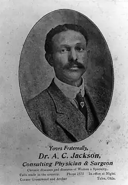 - ^ a b Krehbiel, Randy (31 May 2020). "Tulsa Race Massacre: The Murder of Dr. A.C. Jackson". Tulsa World. Retrieved 5 August 2022.