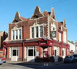 Arthur Cogswell built a reputation of his own and was a friend of John Brickwood, a fellow Freemason[9] who commissioned him to design many of the Brickwood's public houses in the Portsmouth area. He was also responsible for local shops, banks, churches, schools, cinemas, theatres and, in the early 1900s, the Carnegie Library in Fratton Road to which he gave his services for free. His style is very recognisable throughout the city.