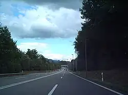 An Autostrasse is the Swiss equivalent of a major rural British "A" road. Portions of the road are nearly like a motorway or American expressway (without the central reservation) with very short entrance and exit sliproads (ramps), with two lanes going in each direction, making it four in all. Possibly due to this, the road is often surprisingly smooth to travel on.