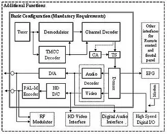 The receiver configuration aspects of the Brazilian Digital Terrestrial Television Standards are described in a document published by ABNT, the Brazilian Association of Technical Standards (Associação Brasileira de Normas Técnicas),[1] the ABNT NBR 15604:2007 - Digital terrestrial television – Receivers.