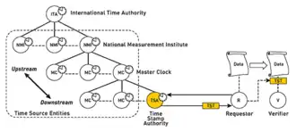 - Time source entity - Most countries have an official source of time and this has been codified over the last hundred years through any number of Mutual Recognition Agreement's and Legal Metrological Agreements (see http://www.oiml.org for more information on Legal Metrology). Why this is important is now that the Internet has made it possible to reach directly into the laboratory that operates the official source of time for that jurisdiction, the many layers of "middlemen” who stood between the end-user and the source of time are now gone. As such, time that can be shown as traceable to the specific national measurement institute or master clock of that jurisdiction is the only source that provides the approved "Time Calibration Source" for X9.95. Examples include NIST in the US and Bureau International des Poids et Mesures (BIPM). Other regulatory frameworks also require that time that is moved through the Network Time Protocol ntp is properly certified and authenticated meaning unauthenticated use of time from any provider will fail X9.95 requirements for obtaining time in a provable manner.