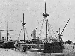 Almirante Brown was present during the ceremonies for the opening of the south basin in the harbor of Buenos Aires on 28 January 1889.[19] On 13 July 1892, the ship was thought to be lost in a storm that claimed the torpedo boat Rosales. The protected cruiser Veinticinco de Mayo was also believed to have sunk in the storm,[14] though both survived.[20] In the following year, Almirante Brown, along with most of the heavy units in the Argentine Navy, took part in putting down the naval defections in the revolution of 1893,[21] where the ironclad shelled and disabled the rebel torpedo boat Murature off Martin García island.[22]