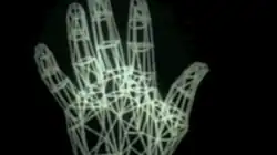 In this sequence in the film, the viewer sees a digitized human hand composed of lines.