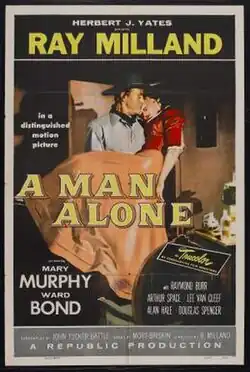 A Man Alone is a 1955 American Western film directed by Ray Milland and starring Milland, Mary Murphy, Raymond Burr and Ward Bond. The story involves a man who stumbles onto the aftermath of a stagecoach robbery in the Arizona desert from which there were no survivors.[1]