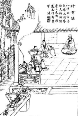 At a famous Buddhist temple in Hebei, Fujian scholar Zeng Xiaolian (曾孝廉) is patronisingly told by a geomancer that "for about twenty years, he would serve in peace and tranquility as prime minister";[1] an ego-stoked Zeng takes this to be true. Just afterwards the increasingly heavy rain forces Zeng and his fellow scholar compatriots to hole up at the monks' quarters, where Zeng discusses his potential Cabinet much to his friends' entertainment.[2]