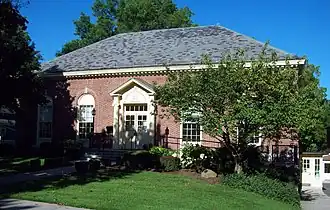 Aaron Barber Memorial Building, also known as Avon Free Library, is a historic library building located at the village of Avon in Livingston County, New York. It is a rectangular five- by three-bay brick one story brick building with a hipped roof. It was built in 1928 in the Colonial Revival style.[2]
