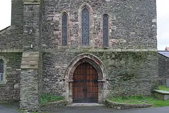 Little remains of the Maenan Abbey buildings, but the original abbey church in Conwy was adapted to become the parish church of St Mary & All Saints and although much rebuilt over the centuries some parts of the original church remain. The west wall with three lancet windows is considered to be a survival from the abbey, along with the lower parts of the east wall. The fine west doorway is believed to have been moved from elsewhere in the abbey, possibly the chapter house.[1] The other buildings of the abbey are thought to have been located north and east of the church, including where Conwy Castle now stands.