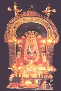 Abhimana Kshethram or Abhimana Sthalam (Devanagari: अभिमान क्षेत्रम् /अभिमान स्थलम्) are a list of 108 sacred Vishnu and Lakshmi temples apart from the other 108 Divya desams. Abhimana desams or close abodes, these temples are the most significant temples in the Vaishnavite tradition which has similar greatness as Divya Desams. These set of temples is classified as an Abhimana Kshethram as it is mentioned in Various Puranas and Ithihasas such as Ramayana and Mahabharata and have Significant Sthala Puranas based on the Ithihasas and Various Puranas of Hinduism . The temples are also said to be visited by many Religious scholars and saints such as Ramanuja, Adi Shankara, Madhvacharya, Nathamuni, Yamunacharya, Vedanta Desika, Manavala Mamunigal, Purandara Dasa, Narayana Teertha, Chaitanya Mahaprabhu and by many other great Vedic teachers and Rishis. Some of these Temples are said to be visited by the Alvars who did not sing the god's grace due to various reasons.[1] Out of these 108 temples Rajagopalaswamy Temple, Mannargudi is considered as the 1st out of the 108 Abhimana Kshethras as Thirumangai Alvar is believed to have visited the temple and is believed to have built the tall flag post outside the temple with the help of cotton bales. The other Alvars who are believed to have visited the temple at various periods were seemingly lost in under the beauty of the presiding deity and were at a loss for words.[1]