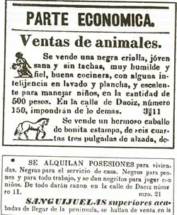 - ^ Roldán de Montaud 2003, p. 189-190"Factors such as the insurgents’ freeing of slaves, the gradual application of the ‘Moret Law,’ and the rising cost of slaves reduced slavery’s economic importance by the late 1870s: in 1867, there were about 400,000 slaves; ten years later, this halved. Yet, at the end of the Ten Years' War, slavery remained a critical issue."
