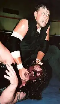 Park was then discovered by Dutch Mantel, who at the time was booking the IWA Puerto Rico, when Mantel attended the first ever Total Nonstop Action Wrestling (TNA) pay-per-view in Huntsville, Alabama on June 19, 2002. Park appeared at the pay-per-view in the Gauntlet for the Gold match under the ring name Justice. Mantel then booked Park to appear in the IWA. The Abyss character was given by Mantel[12] and first appeared in IWA at Golpe de Estado in July 2002 in front of 13,000 fans at the Roberto Clemente baseball park in Carolina, Puerto Rico, when he attacked and disabled Shane the Glamour Boy, who was scheduled to appear in the main event that night versus Savio Vega. While working for the company, Park held the IWA Hardcore Championship, IWA Intercontinental Heavyweight Championship, and IWA World Tag Team Championship.[1] Park worked in the IWA under Mantel for approximately one year until he rejoined TNA in 2003.