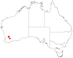 Cowan's wattle is restricted to a few granite outcrops near Kellerberrin and Kulin in the Avon Wheatbelt and Mallee bioregions of south-western Western Australia.[2][4][6]