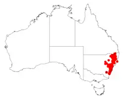 Fern-leaved wattle grows in forest in sandy soil, often in gullies and creeks from south-eastern Queensland to Batemans Bay in southern New South Wales. It is mostly found on the coast and nearby tablelands.[2]