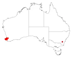 It is native to an area in the South West region of Western Australia where it is found in winter wet areas growing in sandy soils.[1]
