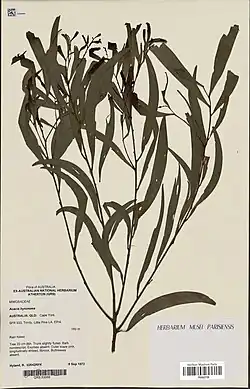 - ^ L. Pedley (1978). "A revision of Acacia Mill. in Queensland". Austrobaileya. 1 (2): 214. ISSN 0155-4131. JSTOR 41738612. Wikidata Q102496754.