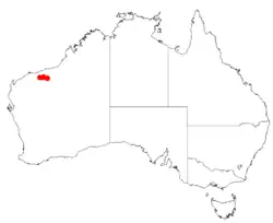 It is native to a small area in the Pilbara region of Western Australia where it is found amongst boulders in rocky outcrops growing in fissures in skeletal sandy loam to gravelly sand soils over and around granite.[2]