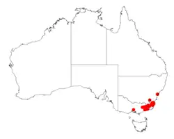 A. silvestris is endemic to south-eastern Australia from around Bodalla State Forest in New South Wales in the north down to around the highlands in East Gippsland in Victoria where it is often situated on rocky hillsides alongside steep gullies, on alluvial flats and on the saddle of ridges where it grows in a range of soils over slate where it is usually part of open Eucalyptus forest communities and can form extensive forests.[3]