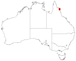 It is found along a narrow stretch of the north eastern coast of Queensland with a length of around 50 km (31 mi)[1] from around Cooktown in the south to Cape Flattery in the north where it is situated among quaternary sand-dunes, often as dense stands as a part of scrub-land[2] or heath-land communities where it is often associated with Corymbia intermedia.[1]