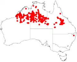 A. stipuligera is found throughout central Queensland and the Northern Territory.[3] In Western Australia the species is found in the Kimberley and Pilbara regions.[2] It is found in flat and undulating areas where it grows in red sandy and loamy soils. It is often part of scrub or woodland communities often associated spinifex.[1]