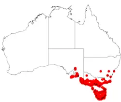 A. verticillata is endemic to New South Wales, Victoria, South Australia and Tasmania.[2] The species is a common understorey shrub in both wet and dry sclerophyll forests as well as scrub and heath. In coastal environments it will often have much wider leaves as opposed to the regular needle-like nature of inland specimens. The range of the plant extends from the Gulf St Vincent in South Australia throughout the south-eastern parts and into southern and south eastern Victoria and far south-eastern New South Wales and Tasmania including the islands in Bass Strait where it is situated in saline, riparian and submontane areas.[3]