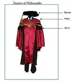 Academic dress is a traditional form of clothing for academic settings, mainly tertiary (and sometimes secondary) education, worn mainly by those who have obtained a university degree (or similar), or hold a status that entitles them to assume them (e.g., undergraduate students at certain old universities).[1] It is also known as academical dress,[2] academicals, or academic regalia.