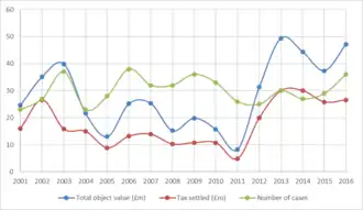 Due to certain tax benefits an item offered under the Acceptance in Lieu scheme is worth 17% more to the offerer than if the item was sold at public auction.[6] This makes the scheme a particularly attractive alternative and has been described by the government as "the most important means of acquiring important works of art and cultural objects for public ownership".[2] Some criticism of the scheme has focussed on its failure to provide for settlement of "everyday" taxes such as income tax such as occurs in France, Ireland and Australia.[10]