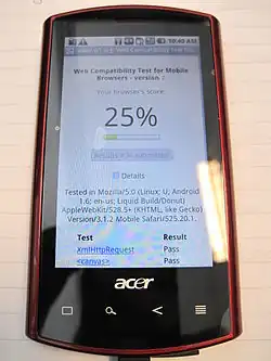 - ^ Jennifer Johnson (15 October 2009). "Acer Announces Liquid A1, "The World's First Snapdragon & Android 1.6 Smartphone"". Hot Hardware. Archived from the original on 27 September 2015. Retrieved 17 September 2010.
