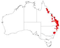 Red cluster heath grows in forest and rainforest from Daintree National Park in Queensland to Yerranderie in New South Wales.[2][7]