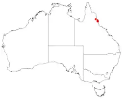 This species grows is known from the Russell River, Mount Bartle Frere and Walshs Pyramid in far north Queensland.[2]