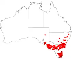 Honey pots is widely distributed in New South Wales, the Australian Capital Territory, Victoria and Tasmania, where it grows in woodland, forest, coastal heath and mallee shrubland.[2][3][4][8]