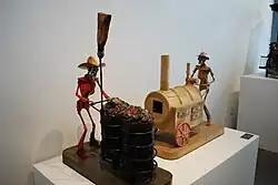 Adalberto Alvarez Marines (born 1952[1]) is a Mexican artist and artisan who specializes in creating sculptures and other works in hard paper mache, called cartonería in Mexican Spanish. As a child, Alvarez began drawing and writing, with some success in publishing illustrations and stories. In his mid twenties, he discovered cartoneria and shifted his artistic work to this medium, first on a personal basis while working at a factory until in 1994, when he dedicated himself to the craft full-time. Alvarez's work is distinct in Mexican cartoneria because of its often non-traditional themes and artistic sense, often classed as art, rather than handcraft. With the exception of alebrijes and skeletal figures, Alvarez avoids traditional forms in favor of exploring what can be done with the medium, focusing on sculpture, decorative items and furniture. He was named a "grand master" of Mexican folk art in 2014 and has exhibited his work in Mexico and the United States. However, he does not like to spend time in exhibition and promotion, establishing his own Cartoneria Museum at his home in Santa Catarina Ayotzingo, Chalco, State of Mexico